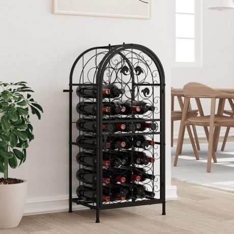 Casier à bouteilles 33 bouteilles noir 45x36x100 cm fer forgé