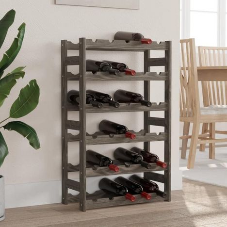 Casier à bouteilles pour 30 bouteilles gris bois pin solide