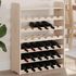 Ce casier à vin dispose de six niveaux de rangement, permettant de stocker un nombre considérable de bouteilles. Les dimensions des porte-bouteilles sont de 14 x 45 mm, ce qui les rend adaptées à la plupart des formats de bouteilles de vin. Le panneau supérieur offre un espace supplémentaire pour exposer des objets décoratifs ou des accessoires liés au vin.