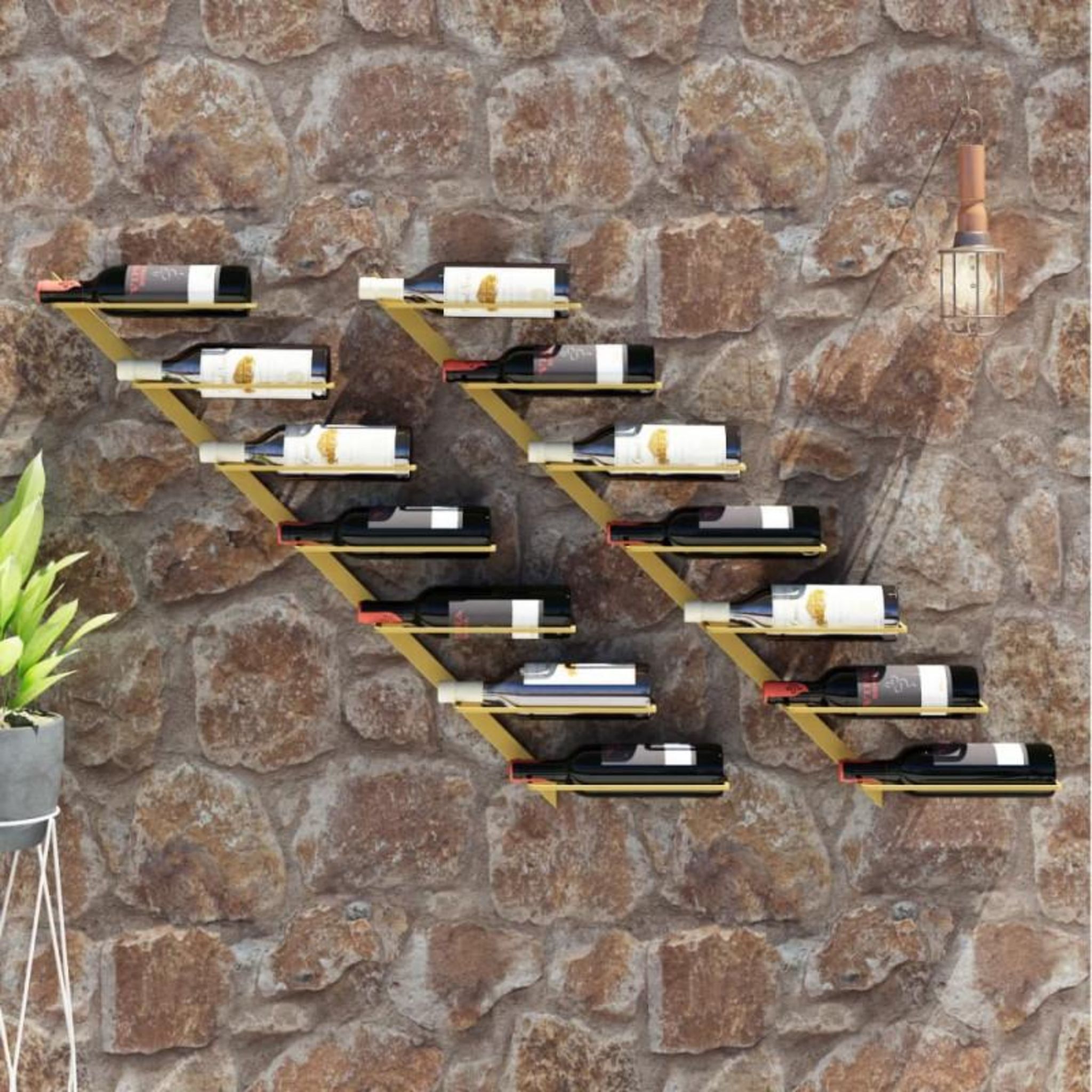 Casier à vin mural pour 7 bouteilles 2 pcs Doré Métal