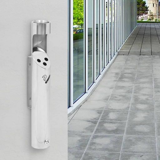 A la recherche d'un dispositif d'elimination des megots de cigarettes qui ne prend pas trop de place et qui est joli sur votre mur, essayez ce cendrier mural. Ce cendrier est fabrique en acier inoxydable et ideal pour la fixation aux murs interieurs et exterieurs. La forme cylindrique avec un petit
