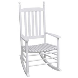 Detendez-vous dans notre chaise a bascule en bois solide d'inspiration vintage. Dote d'un design elegant et intemporel, ce sera un supplement pratique et altique a toute decoration. Fait de bois dur massif avec une finition durable, le fauteuil se distingue par sa durabilite et sa resistance aux int