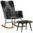 Chaise a bascule et repose-pieds Marron Noir veritable et toile