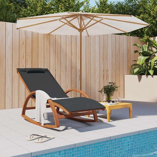 Chaise a bascule textilene gris et bois de peuplier massif