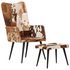 Chaise a oreilles avec repose-pied Marron Cuir veritable