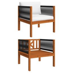 La chaise dispose d'une durabilite extreme, grace au materiau en bois d'acacia massif. Par consequent, elle est adaptee pour une utilisation dehors. Avec un design de corde distinctif, le siege d'exterieur attirera tous les regards. De plus, le siege d'exterieur est leger et facile a deplacer. Les coussins bien rembourres assurent votre confort d'assise.