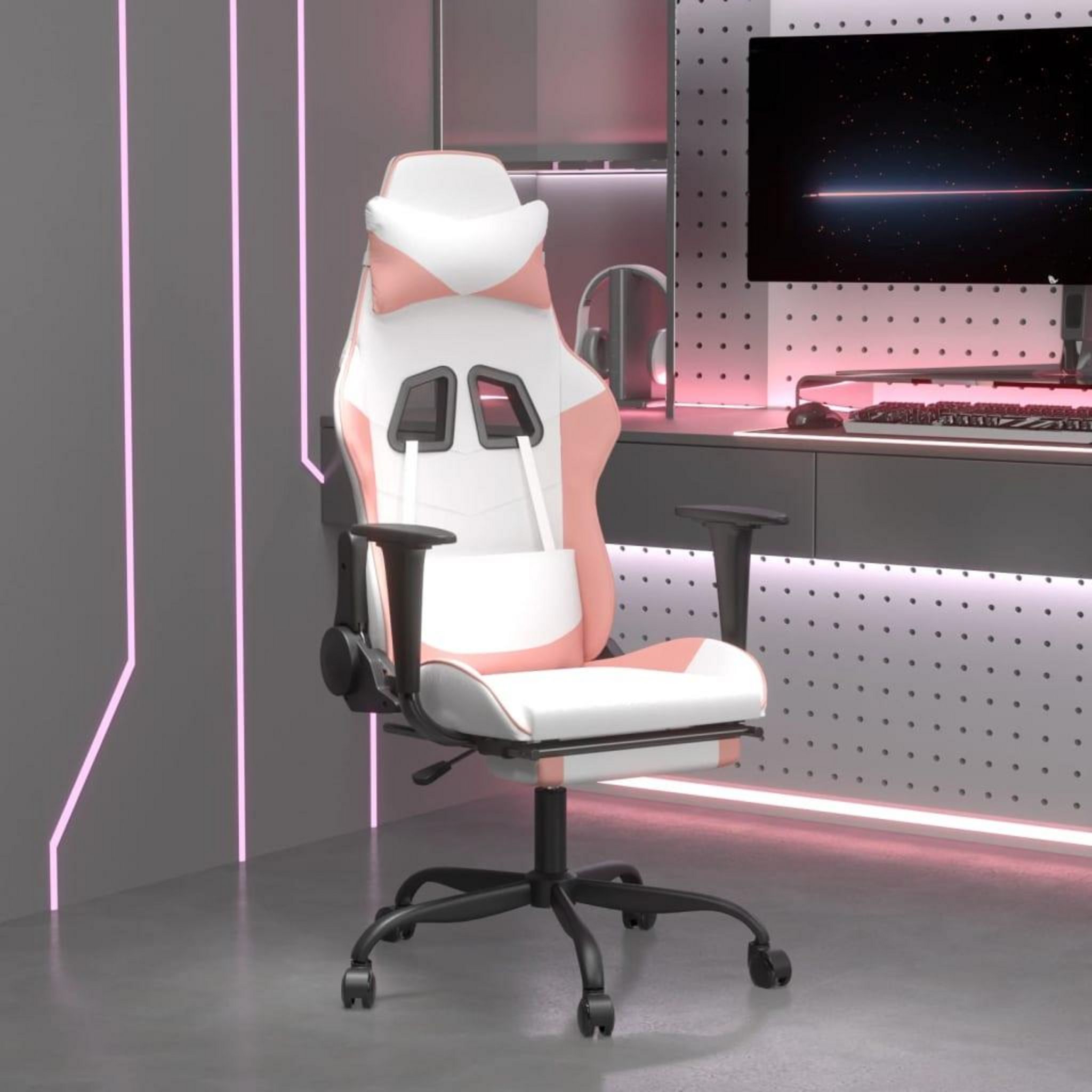Chaise de jeu avec repose-pied Blanc et rose Similicuir