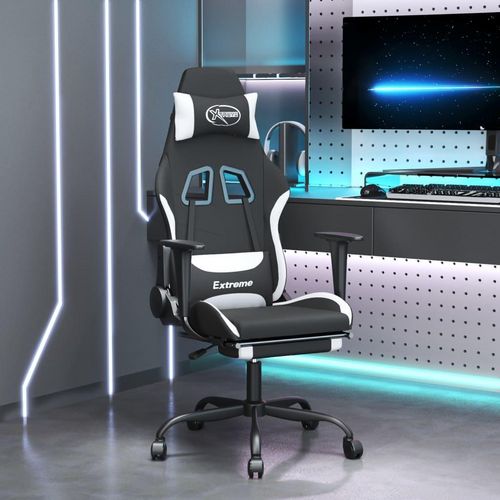 Chaise de jeu avec repose-pied Noir et blanc Tissu
