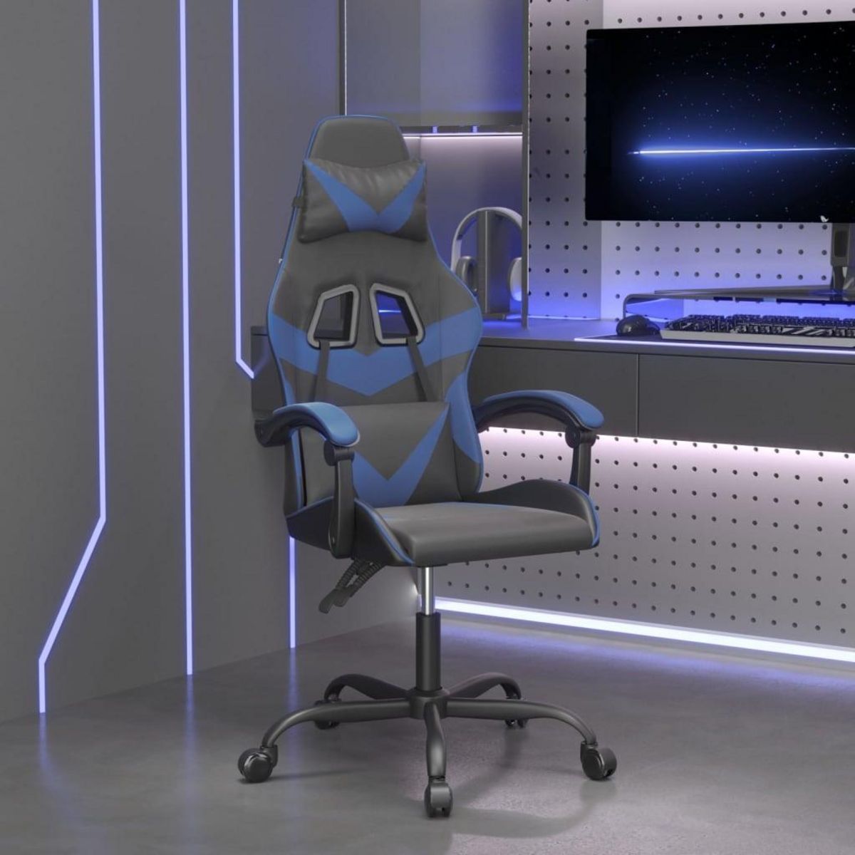 Chaise de jeu Noir et bleu Similicuir