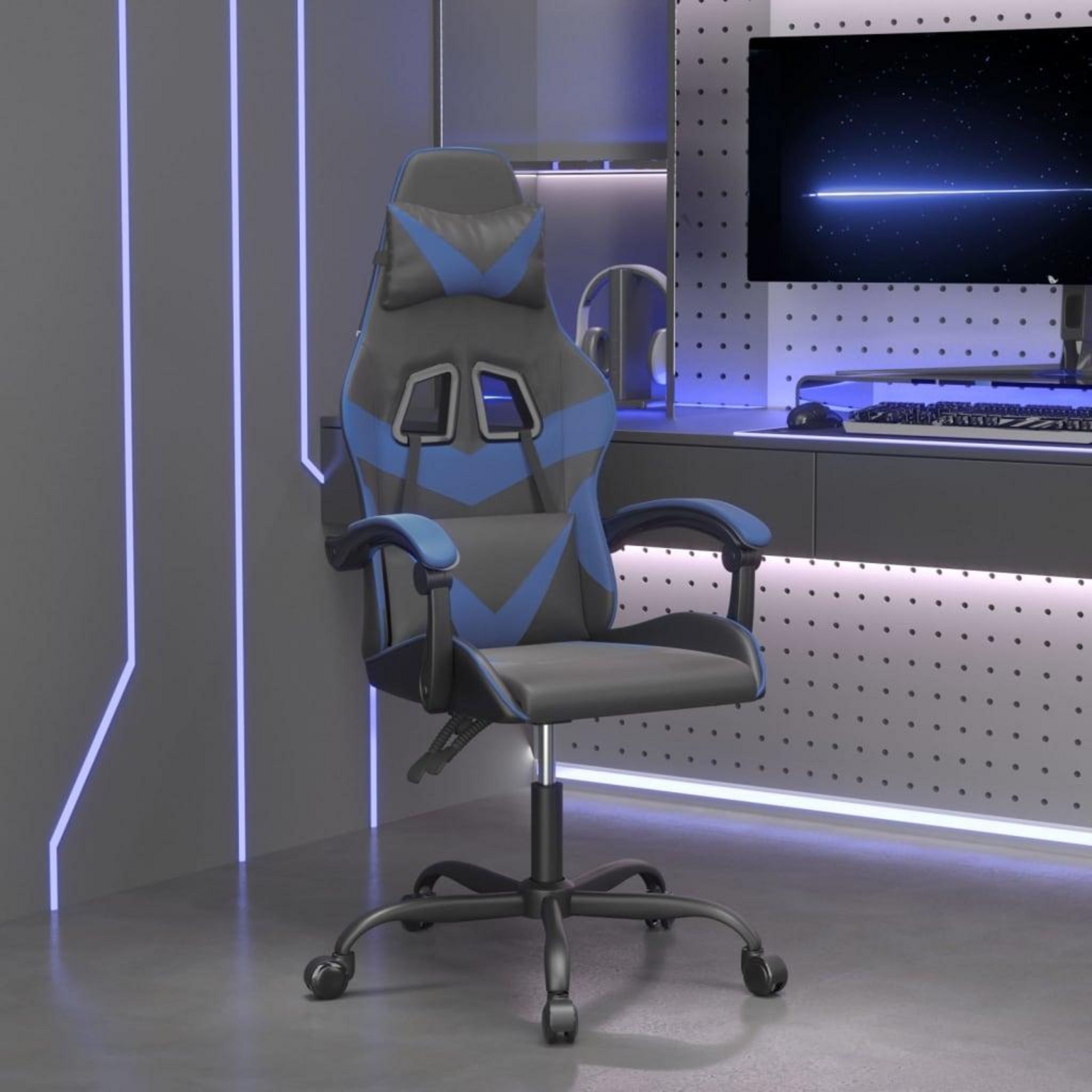 Chaise de jeu pivotante Noir et bleu Similicuir
