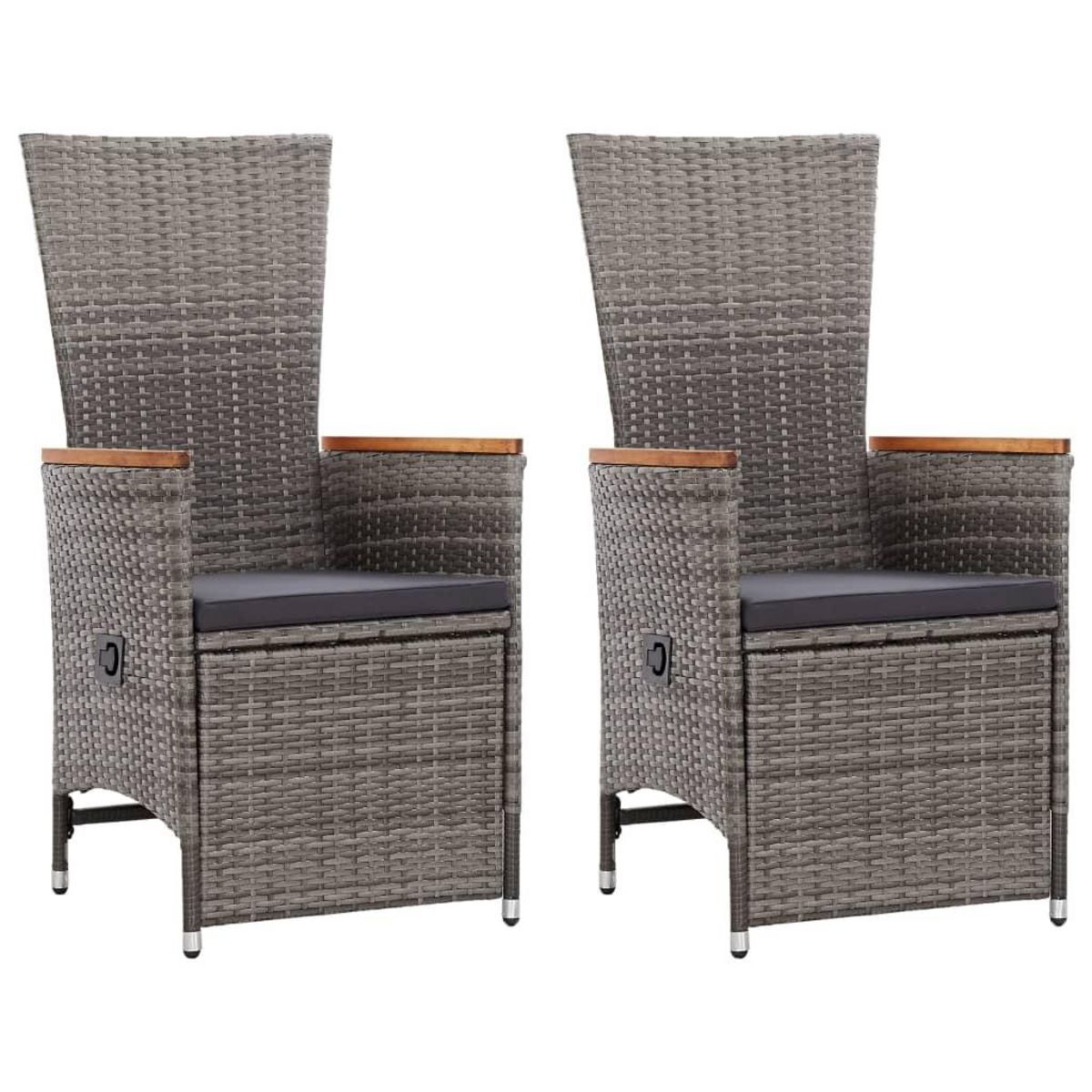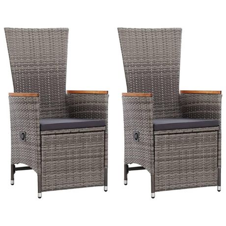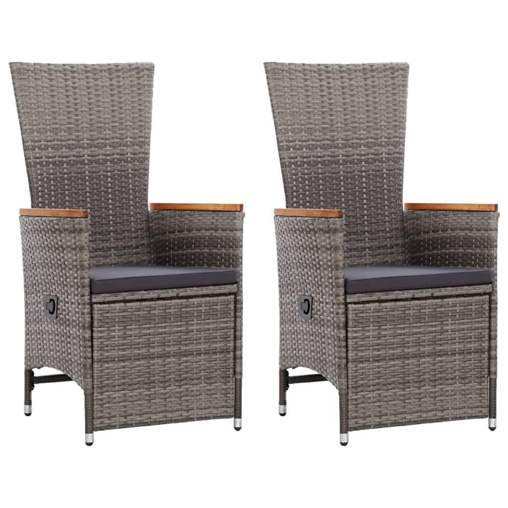 Chaise inclinable de jardin 2pc et coussins Resine tressee Gris