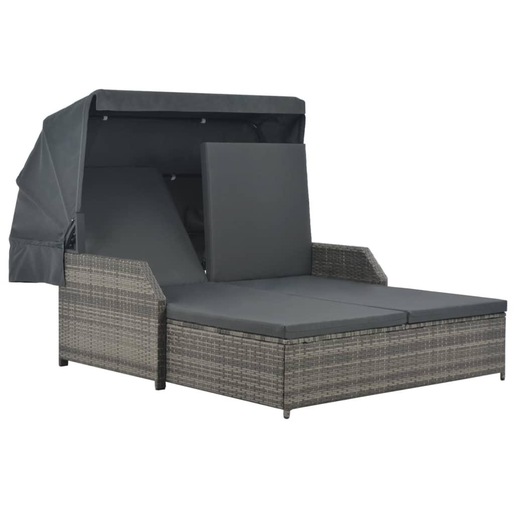 Chaise longue a 2 places avec auvent Resine tressee Gris