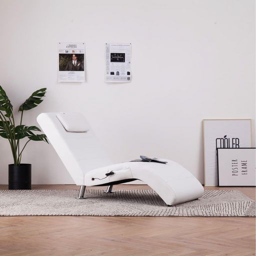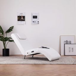 Chaise longue de massage avec oreiller Blanc Similicuir