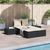 Chaise longue double avec coussins noir resine tressee