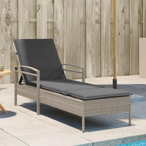 Chaise longue et coussin gris clair 63x200x81 cm resine tressee