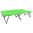 Ce lit de camp leger a suffisamment d'espace pour deux personnes. Ainsi, vous et un ami pouvez aller faire du camping sans avoir a dormir sur un sol froid et dur. Le cadre en acier antirouille peut soutenir jusqu'a 240 kg tandis que la conception surelevee permet une bonne circulation d'air en dessous. Le tissu en polyester 600 D resistant a l'eau resiste a des annees d'utilisation sans affaissement et vous aide a rester au sec tout en campant dans un environnement humide. Le lit de terrain est pliable pour faciliter le transport et le stockage, ce qui en fait votre meilleur partenaire de camping !