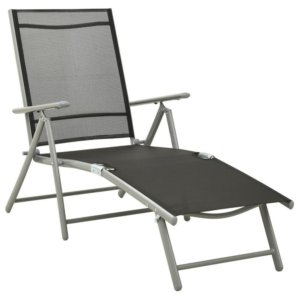 Chaise longue pliable Textilene et aluminium noir et argente