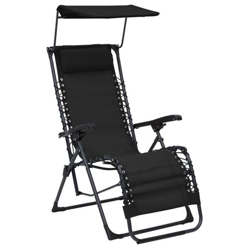 La chaise de jardin a un cadre en acier robuste et un siege et un dossier en textilene facile a nettoyer et resistant aux intemperies pour vous servir pendant de nombreuses annees. L'appui-tete rembourre est doux et confortable. Dotee d'un toit, la chaise a gravite offre une ombre fraîche sous le soleil. De plus, comme la chaise d'exterieur est legere, elle peut etre facilement deplacee et pliable pour economiser de l'espace lorsqu'elle n'est pas utilisee.