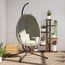 Chaise suspendue en forme d'œuf et support beige tissu et acier