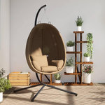 Chaise suspendue en forme d'œuf et support taupe tissu et acier