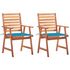 Chaises a manger d'exterieur lot de 2 et coussins Acacia massif
