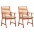 Chaises a manger d'exterieur lot de 2 et coussins Acacia massif