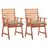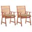 Chaises a manger d'exterieur lot de 2 et coussins Acacia massif