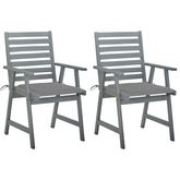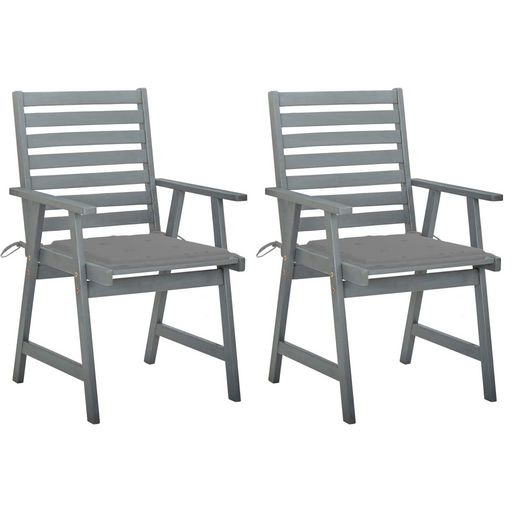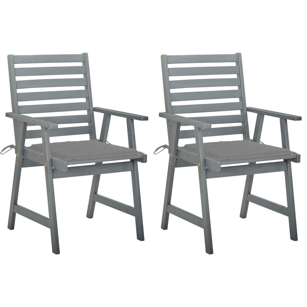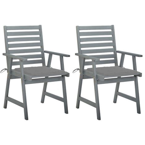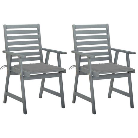 Chaises a manger d'exterieur lot de 2 et coussins Acacia massif