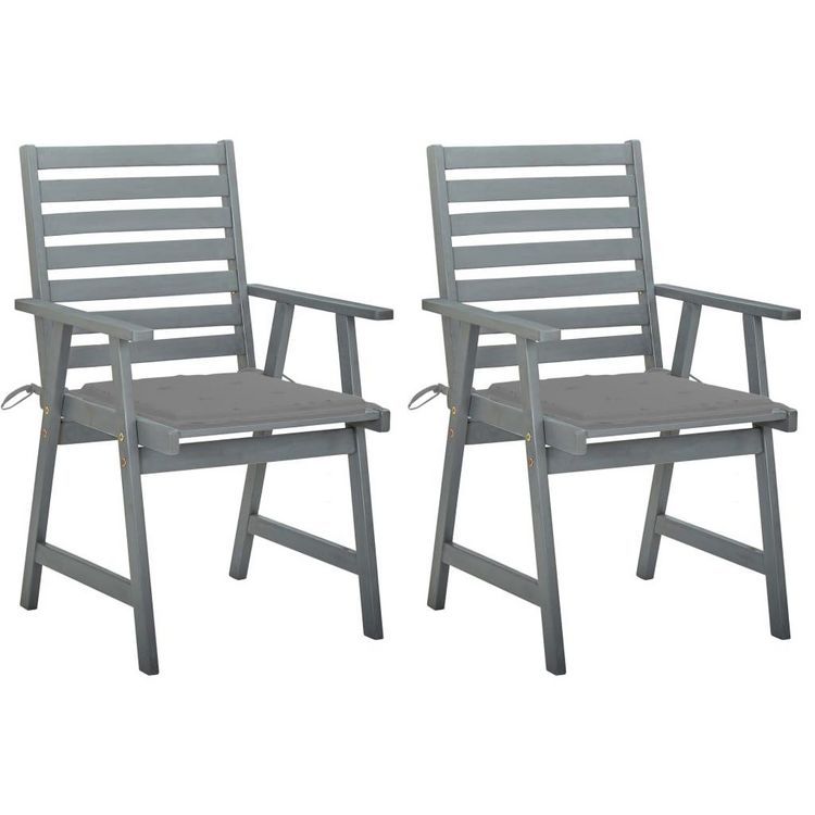Ces chaises a dîner sont fabriquees en bois d'acacia massif, un bois dur tropical, resistant aux intemperies et durable pendant des annees. La conception a lattes apportera un charme rustique. De plus, les coussins inclus offrent du confort supplementaire lors de l'assise. Ils sont composes a 100 % de polyester qui a ete traite pour le rendre impermeable. Chaque coussin a deux jeux de cordes pour le fixer fermement sur la chaise.