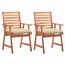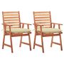 Chaises a manger d'exterieur lot de 2 et coussins Acacia massif