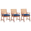 Chaises a manger d'exterieur lot de 3 et coussins Acacia massif