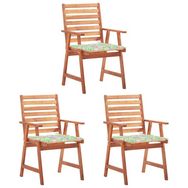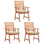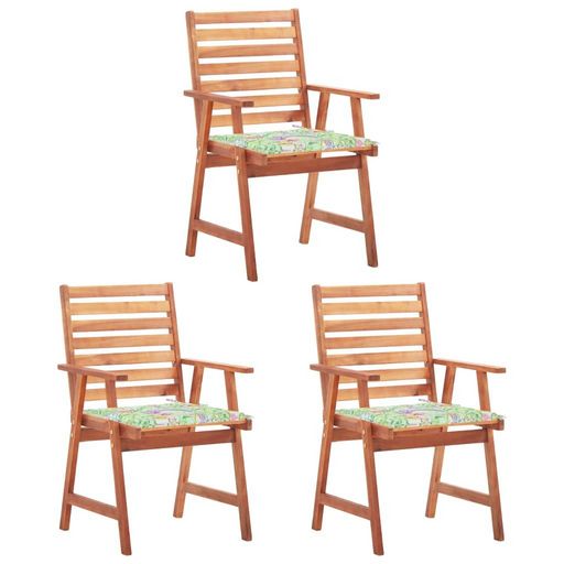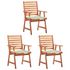 Chaises a manger d'exterieur lot de 3 et coussins Acacia massif