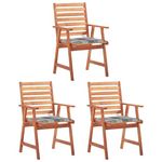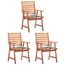 Chaises a manger d'exterieur lot de 3 et coussins Acacia massif