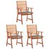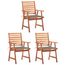 Chaises a manger d'exterieur lot de 3 et coussins Acacia massif