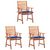 Chaises a manger d'exterieur lot de 3 et coussins Acacia massif