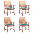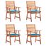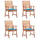 Chaises a manger d'exterieur lot de 4 et coussins Acacia massif