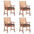 Chaises a manger d'exterieur lot de 4 et coussins Acacia massif