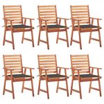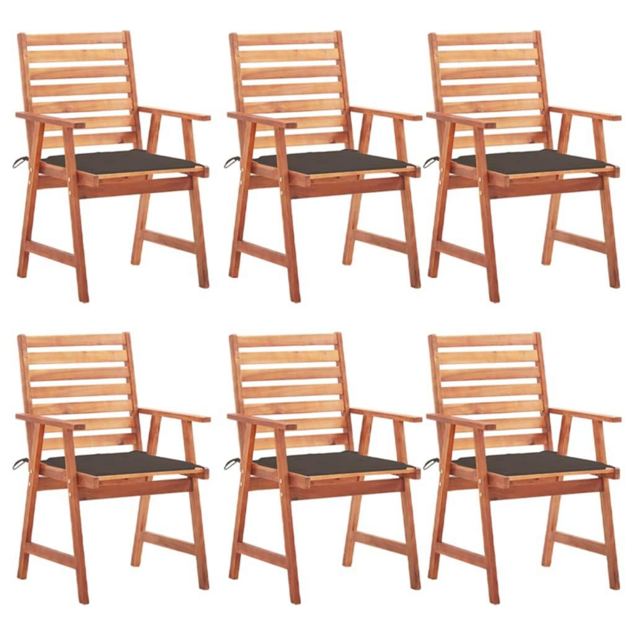 Chaises a manger d'exterieur lot de 6 et coussins Acacia massif