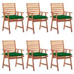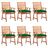Chaises a manger d'exterieur lot de 6 et coussins Acacia massif
