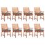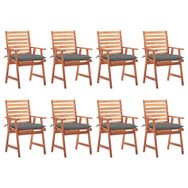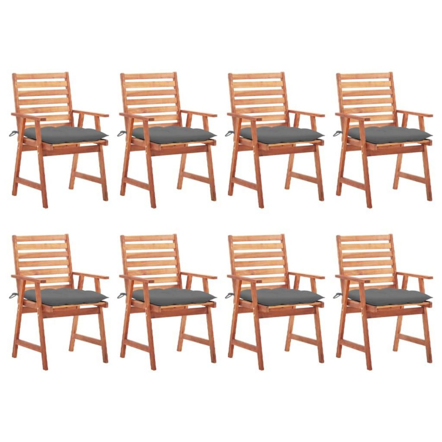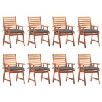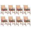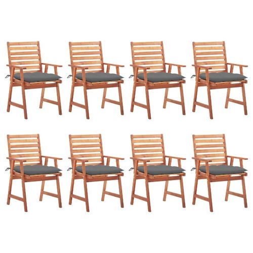 Chaises a manger d'exterieur lot de 8 et coussins Acacia massif