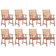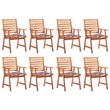 Chaises a manger d'exterieur lot de 8 et coussins Acacia massif
