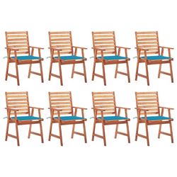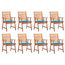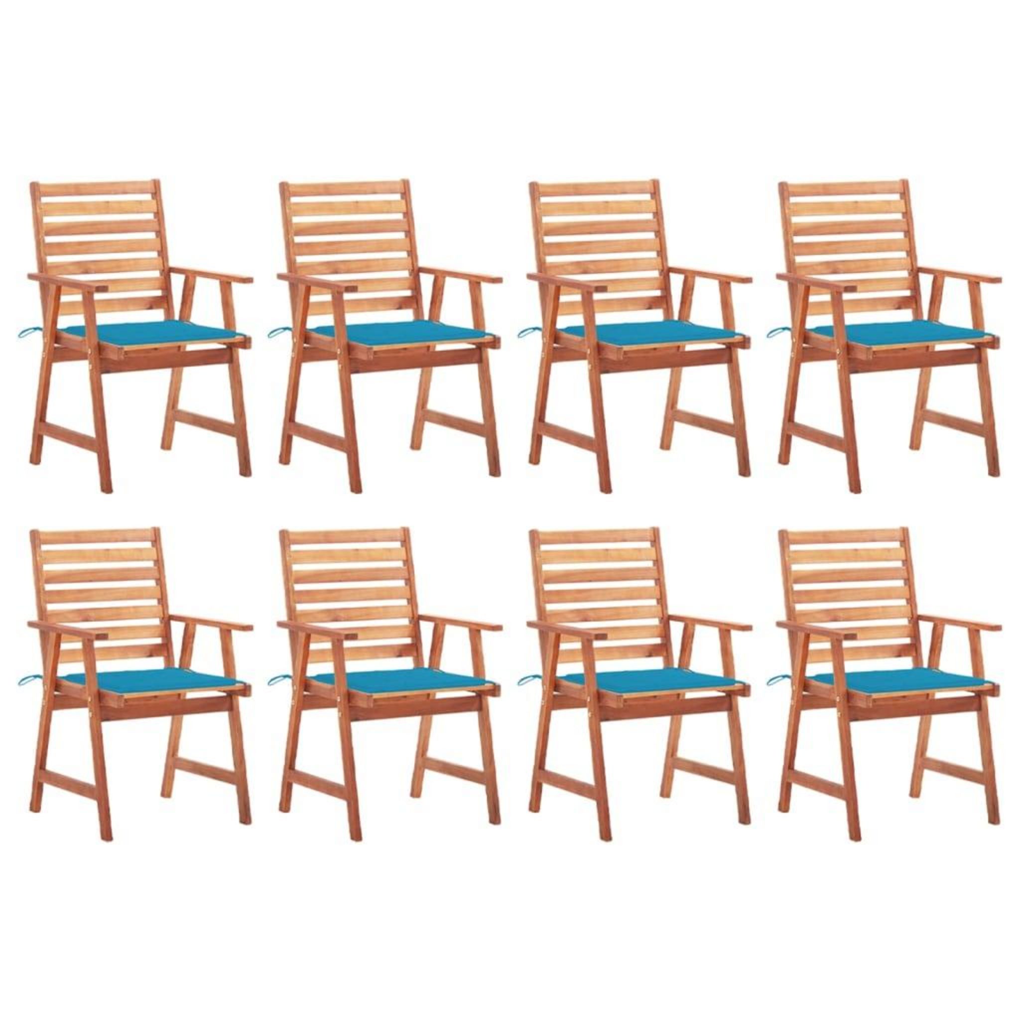 Chaises a manger d'exterieur lot de 8 et coussins Acacia massif