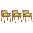 Chaises a manger de jardin avec coussins lot de 3 Acacia massif