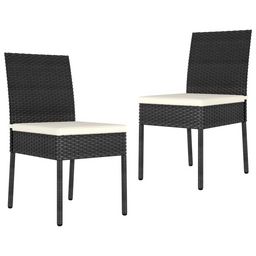 La chaise d'exterieur est en resine tressee, ce qui la rend resistante aux intemperies et facile a nettoyer. Les cadres en acier enduit de poudre noire sont stables et durables. Grace a sa construction legere, la chaise de salle a manger peut etre deplacee facilement et peut etre utilisee a l'exterieur. En outre, les coussins de siege inclus offrent egalement un confort supplementaire.