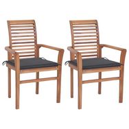 Chaises a manger lot de 2 avec coussins anthracite Bois de teck
