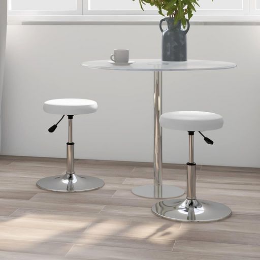 La chaise de cuisine est tapissee en similicuir facile a nettoyer pour offrir un confort optimal. Le cadre en acier chrome offre une grande robustesse et stabilite. Grace au mecanisme de levage a gaz, cette chaise pivotante de salle a manger peut etre reglee en hauteur et s'ajoute parfaitement a tout bar fonctionnel ou coin repas. Elle peut egalement pivoter a 360 degres pour une grande flexibilite.