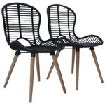 Chaises à manger lot de 2 noir rotin naturel