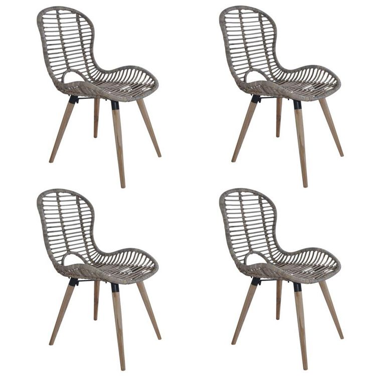 Grace au siege et au dossier en rotin naturel, les chaises sont resistantes a l'eau et faciles a nettoyer. Les pieds en bois assurent la stabilite et la durabilite de cet ensemble et leur donnent un style vintage. Ces chaises conviendront a toute decoration et sont faciles a assembler. La livraison inclut 4 chaises de salle a manger.
