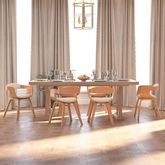 La chaise de salle a manger est rembourree en similicuir, doux pour vous asseoir et facile a nettoyer. Grace au siege et au dossier rembourres en mousse, cette chaise de cuisine offre un confort d'assise optimal. Les pieds en bois courbe de haute qualite rendent la chaise tres solide et durable et ajoutent a son aspect chic.