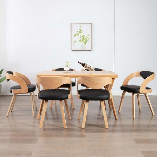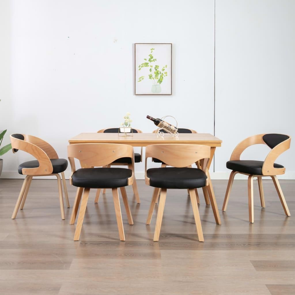 Chaises a manger lot de 6 noir bois courbe et similicuir